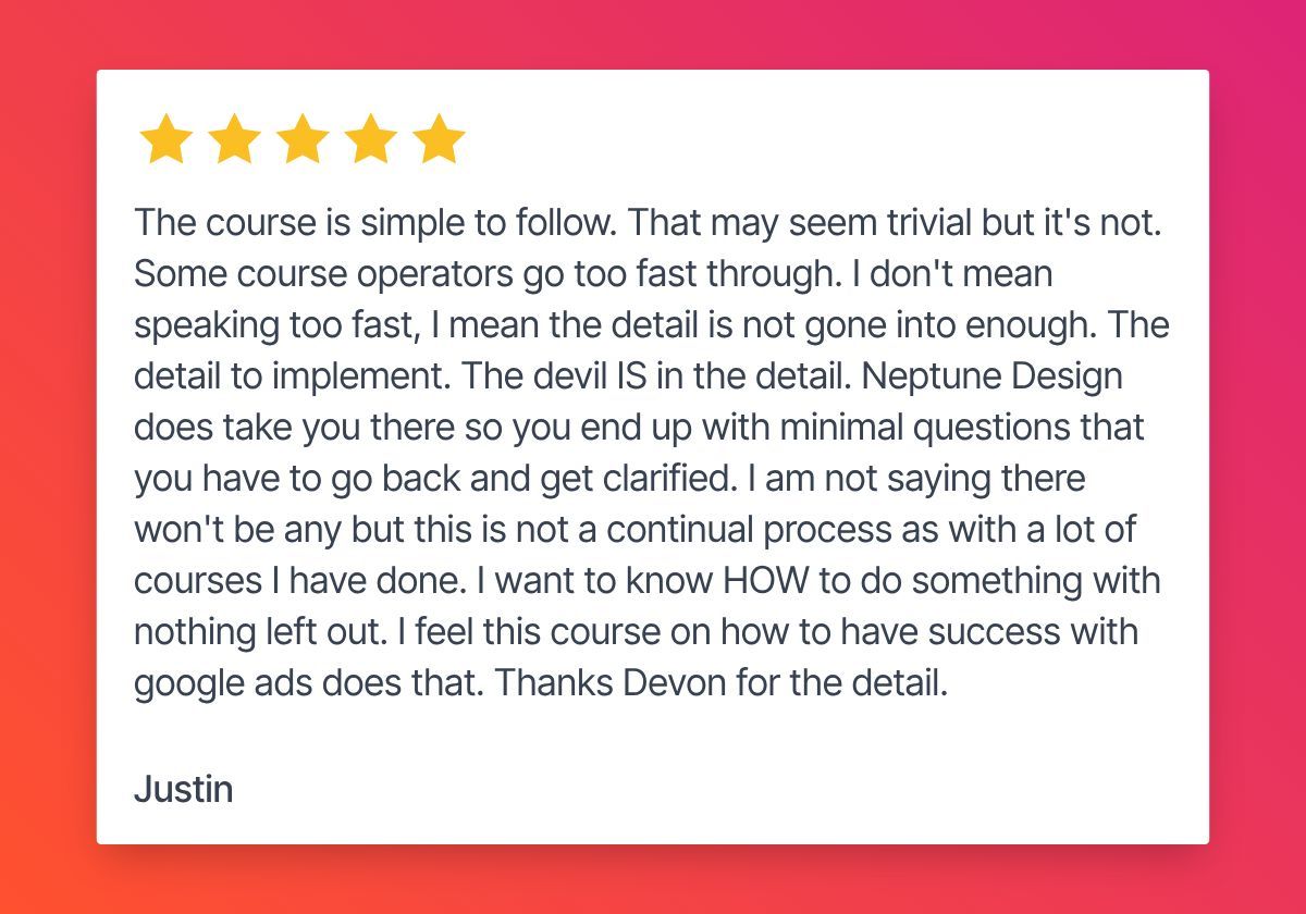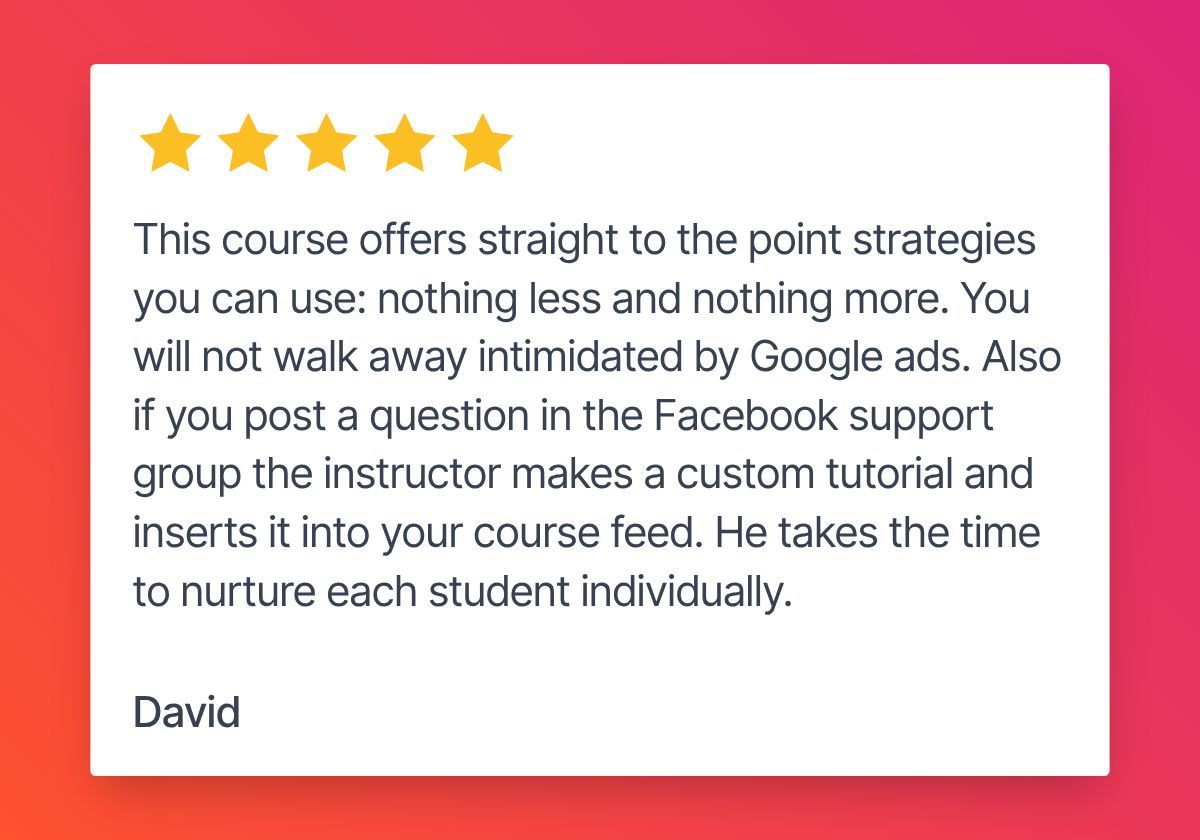 The ultimate package for mastering Google Ads, featuring the 14-hour Profitable PPC course, 1 year of access to our private Google ads community