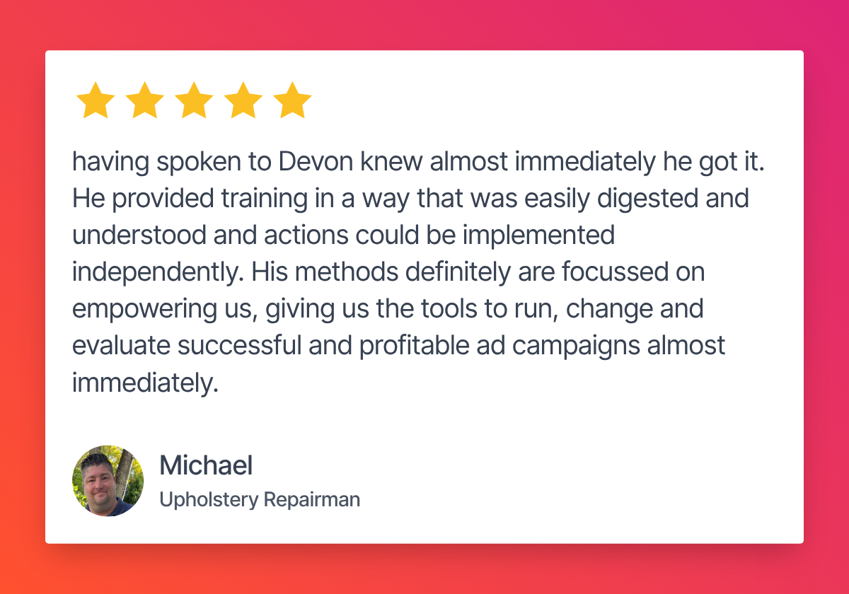 Because it gives them the accountability and expert guidance they need to finally fix what’s broken — fast. In just three days, they walk away with a cleaner, higher-performing ad account and total clarity on what actually drives results.