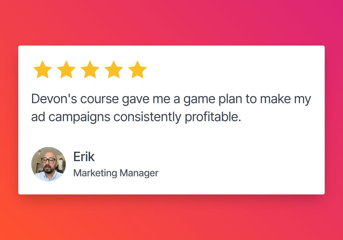A 3-day live challenge helping participants audit, clean up, and rebuild their existing ad accounts for better ROI. Includes templates, group calls, and Devon's personal review of 3 participants’ accounts live.
